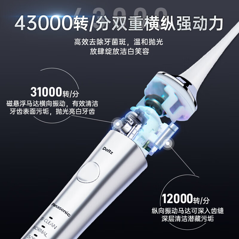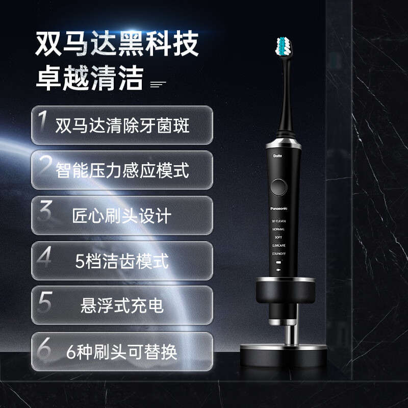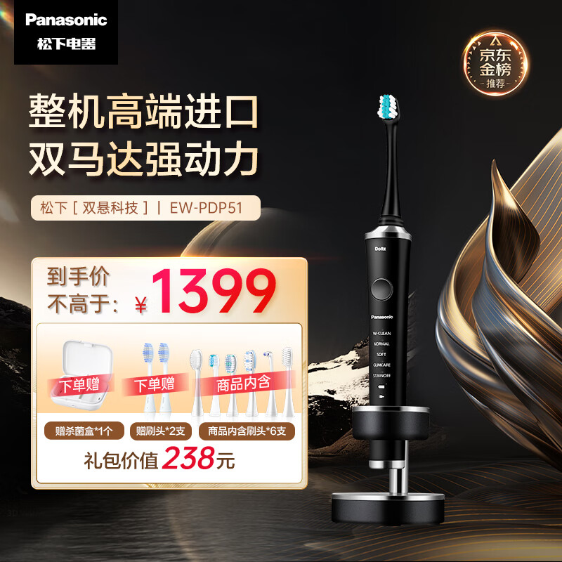 松下(Panasonic)电动牙刷牙医推荐高端整机进口 科技双马达 智能感应 生日礼物送男友送女友PDP51黑色价格:1399.00元!