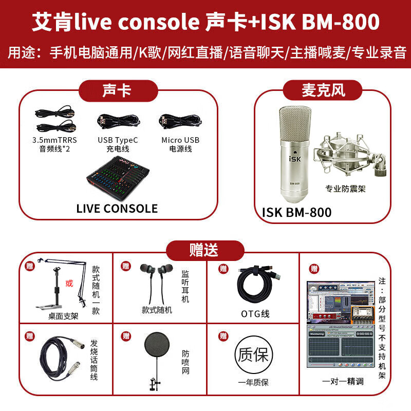 艾肯艾肯Live Console+ISK BM800配置参数: