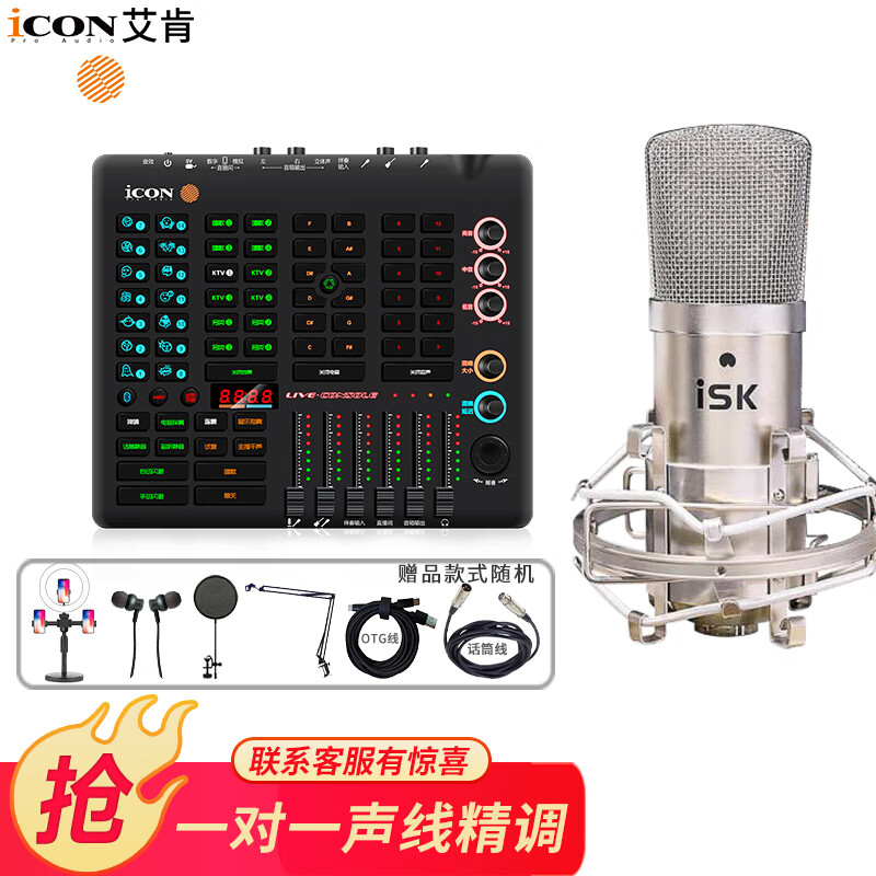艾肯(iCON)Live Console声卡+BM800麦克风话筒套餐蓝牙伴奏手机喊麦唱歌录音户外主播直播设备 价格:2416.00元!