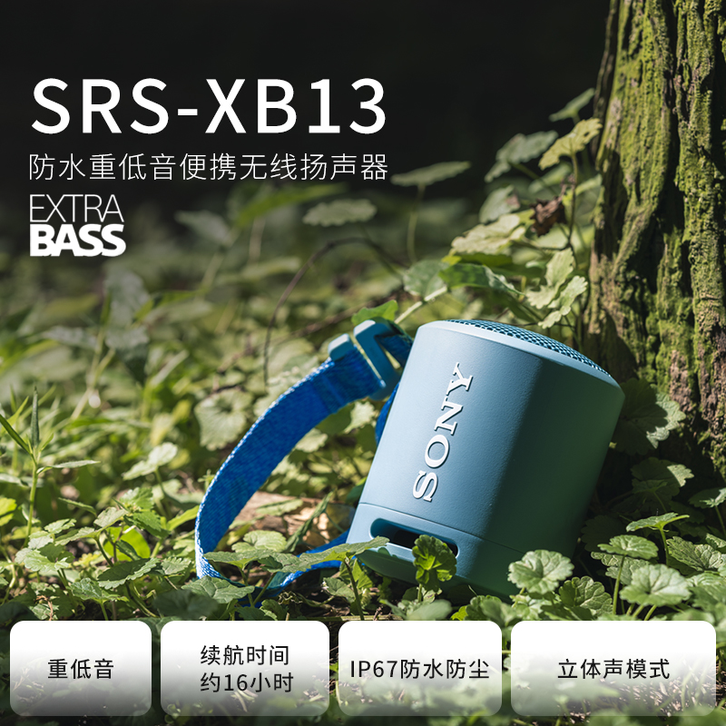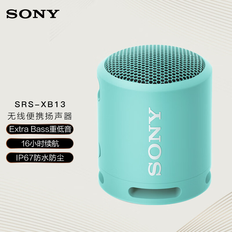 索尼(SONY)SRS-XB13 蓝牙音箱 迷你便携 重低音16小时续航 户外音箱 IP67防水防尘 粉蓝色价格:299.00元!