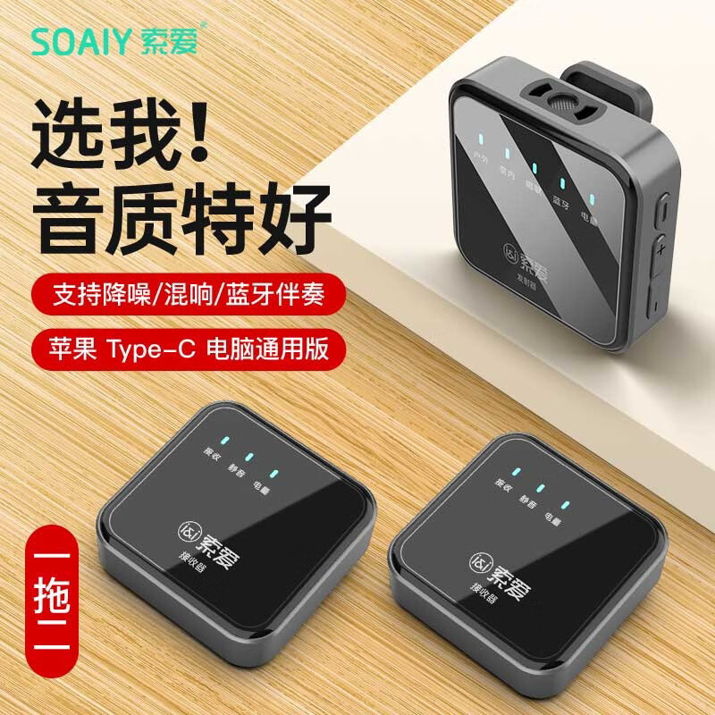 索爱 MK19无线领夹麦克风viog录音声卡收音器小蜜蜂户外直播采访短视频降噪话筒【一拖二】Type-C 苹果通用版价格:459.00元!