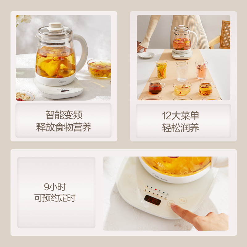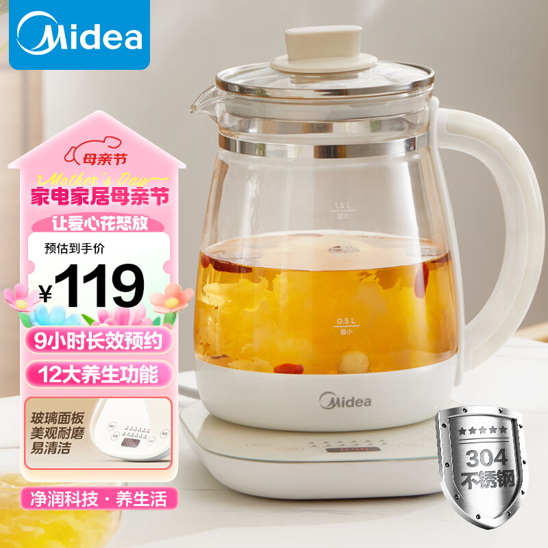 美的(Midea)养生壶 玻璃面板煮茶器 烧水壶 煮茶壶热水壶 办公室1.5L大容量恒温保温玻璃养生壶 YSNC1501A价格:129.00元!