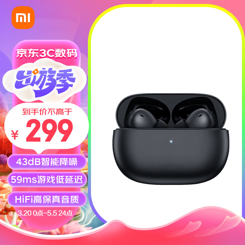 小米(MI)Redmi Buds 4 Pro 真无线蓝牙耳机 主动降噪 游戏低延迟 苹果华为手机通用(极夜黑)价格:279.00元!