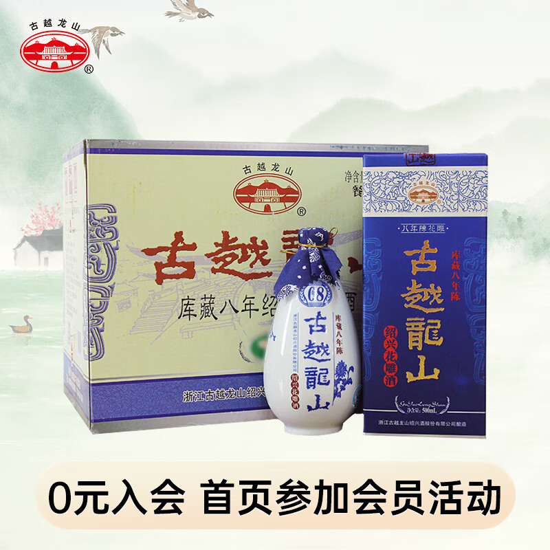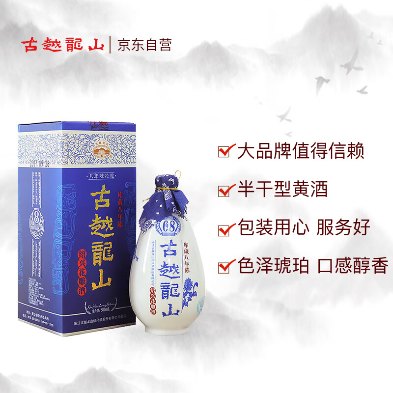 古越龙山 库藏八年 传统型半干 绍兴 黄酒 500ml*6瓶 整箱装 花雕价格:390.00元!