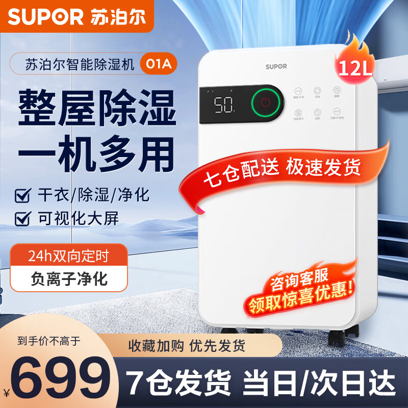 苏泊尔(SUPOR)除湿机/抽湿机家用轻音吸湿器地下室干燥机回南天梅雨季干衣净化 12L/天 EDIH-01A-12价格:1399.00元!