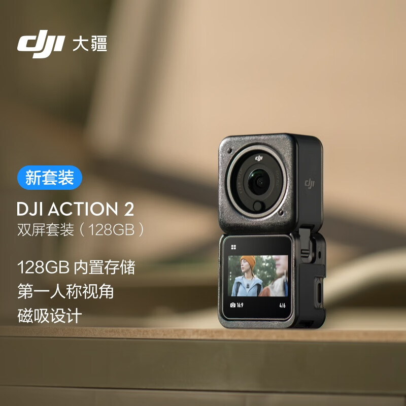 大疆DJI Action 2 双屏套装(128GB) 灵眸运动相机 小型便携式手持防水防抖vlog相机+随心换1年价格:2168.00元!