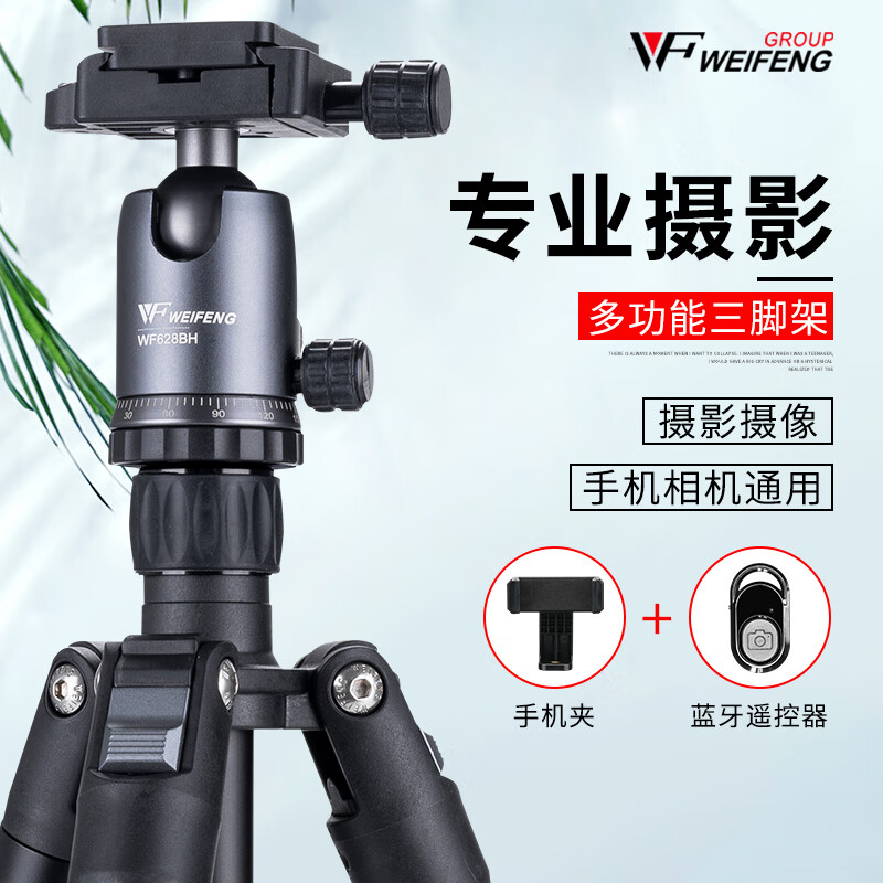 伟峰 WF-628 旅游便携三脚架微单反相机摄影摄像角架 自拍直播户外投影仪落地支架【送手机夹+蓝牙】价格:258.00元!