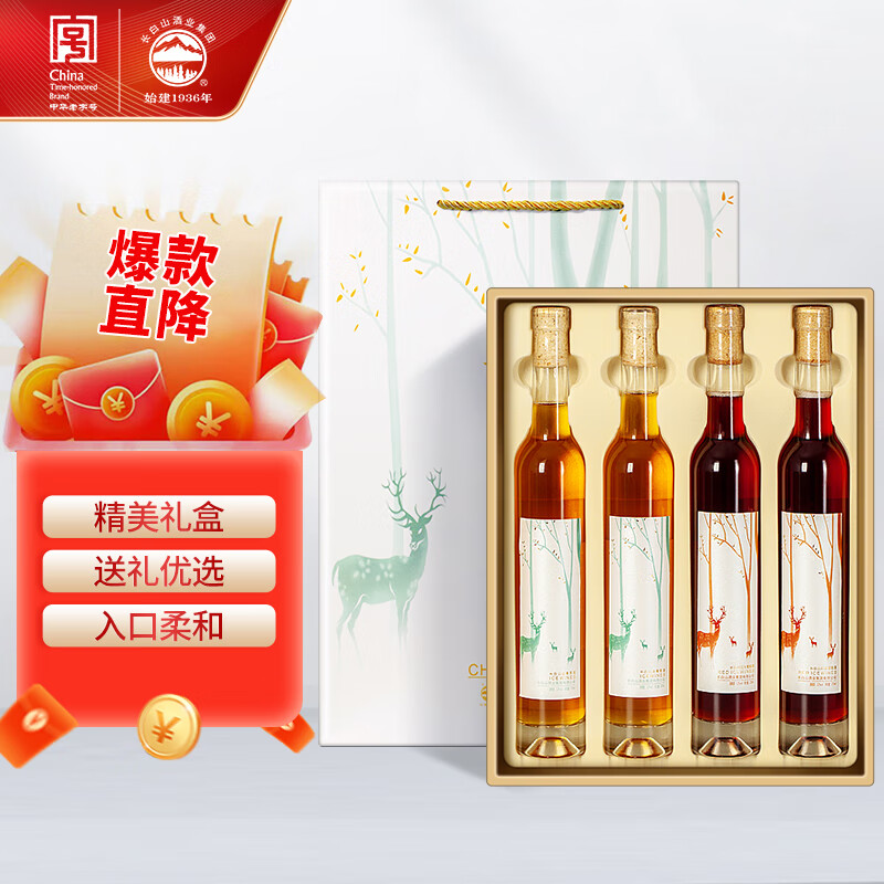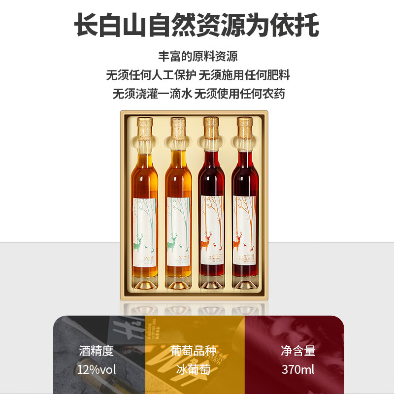 长白山 葡萄酒甜型冰酒礼盒冰红冰白红酒礼盒装母亲节礼品送礼370ml*4瓶价格:229.00元!
