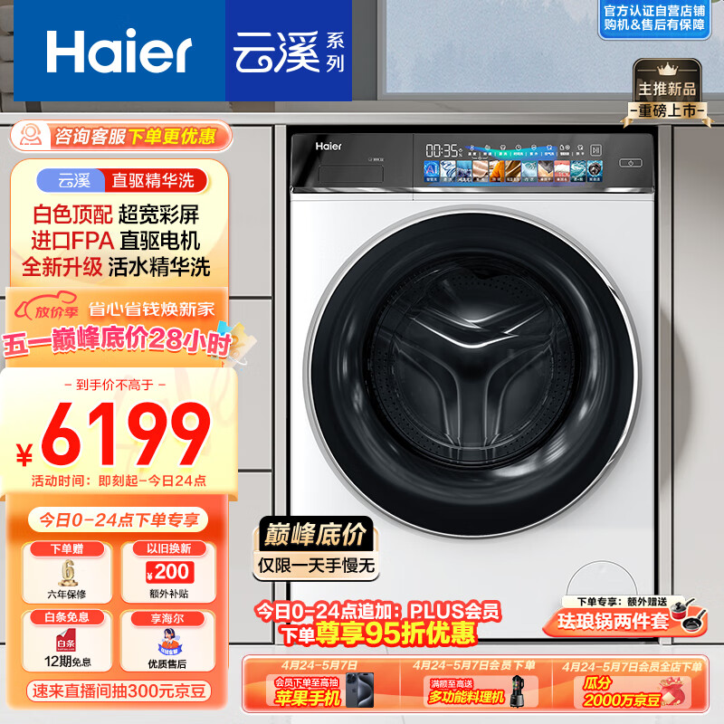 海尔(Haier)滚筒洗衣机全自动 云溪白376Pro 直驱精华洗2.0 家用10公斤洗烘一体 以旧换新EG10014HBDL9W价格:6999.00元!
