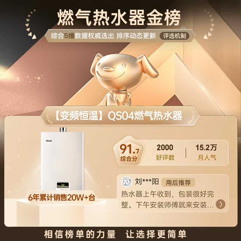 4、颜值高,安装师傅很细心,耐心,说以后要是有什么问题直接找他就好,热水器好评,大家可以放心入手,这一款性价比高,用着安心。