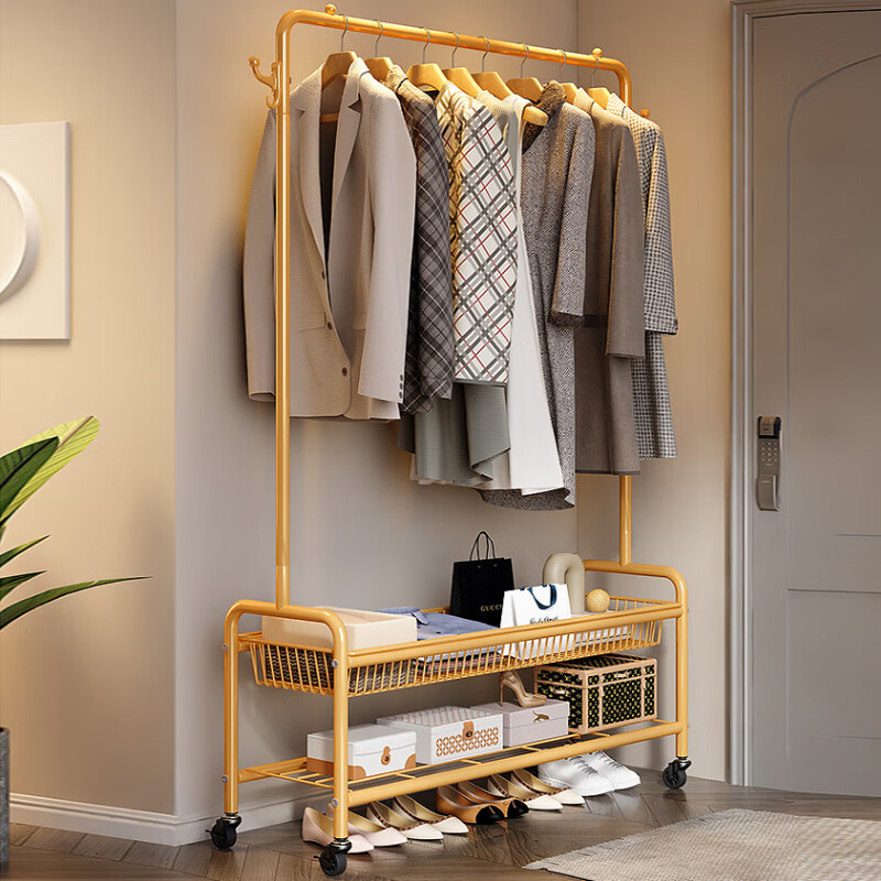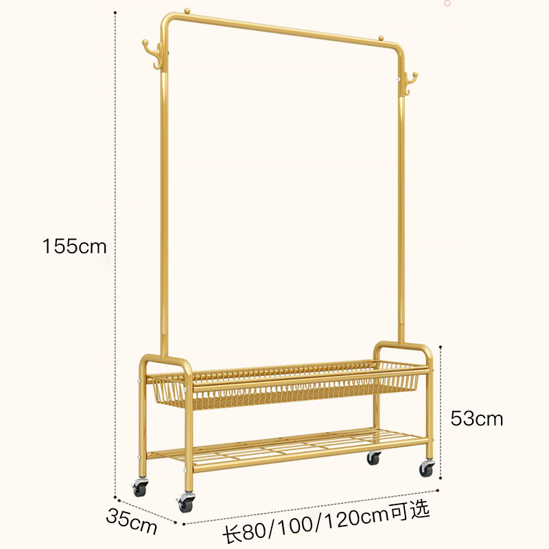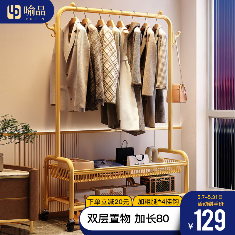 喻品衣架落地衣帽架挂衣架卧室客厅可移动晾衣收纳架子YJ057双层金80价格:149.00元!