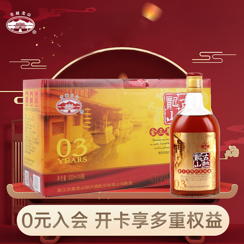 古越龙山 库藏 金三年 半干型 绍兴黄酒 500ml*8瓶 整箱装价格:79.00元!
