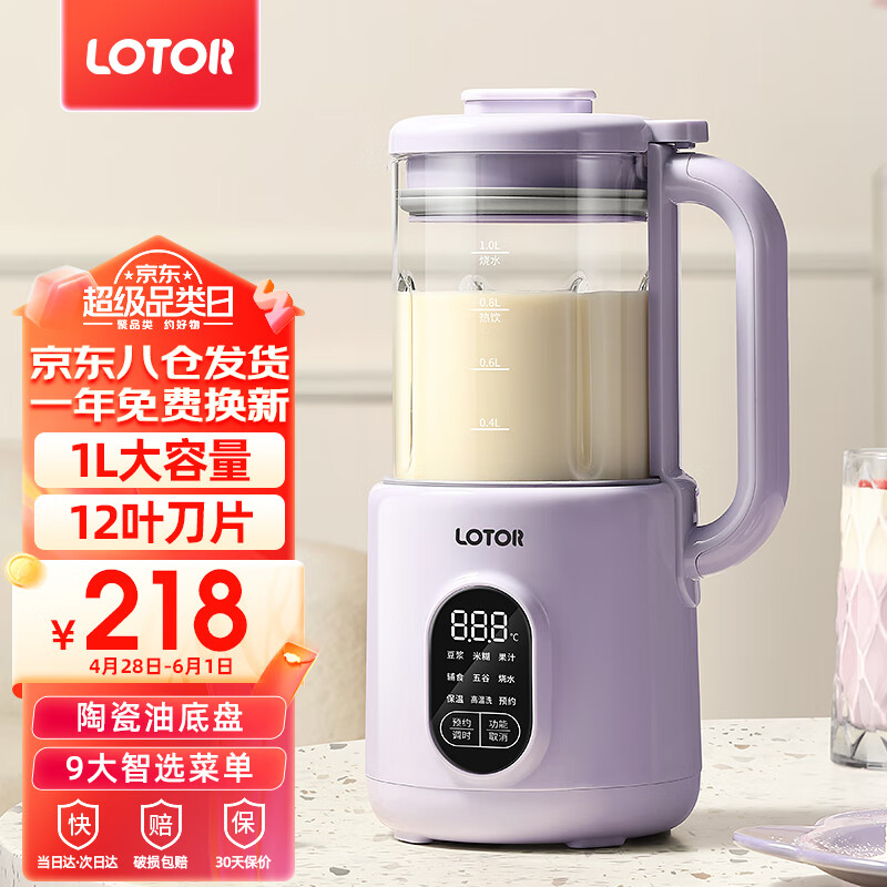 小浣熊豆浆机迷你破壁机五谷杂粮家用小型全自动静音免滤免洗米糊机榨汁机料理机婴儿辅食机3人4 1L紫色玻璃款价格:309.00元!