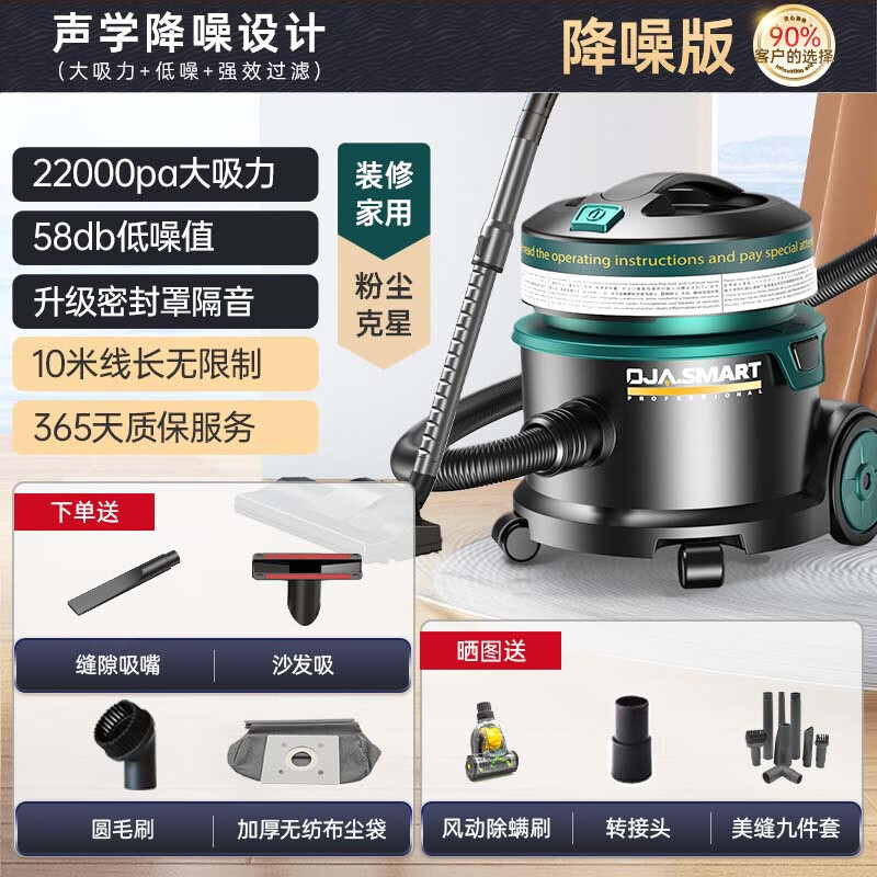 OJA【安静低噪音】吸尘器家用大吸力大功率工业桶式有线办公室地毯酒店商用专业吸拖一体除尘螨毛发价格:818.00元!
