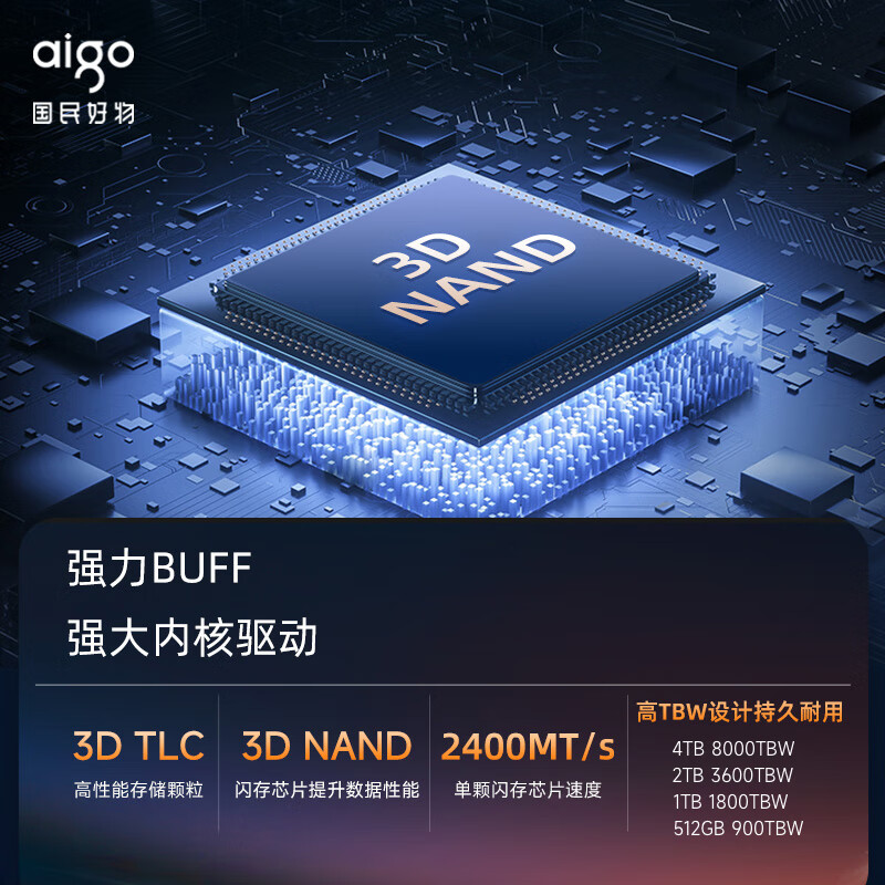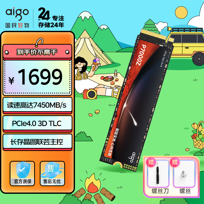 爱国者(aigo)4TB SSD固态硬盘 M.2接口(NVMe协议PCIe4.0x4)长江存储晶圆 P7000Z 读速高达7450MB/s AI电脑配件价格:1699.00元!