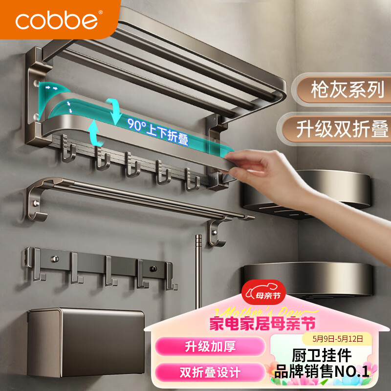 卡贝(cobbe)浴室太空铝毛巾架免打孔卫生间置物架厕所浴巾架卫浴五金挂件套装价格:299.00元!