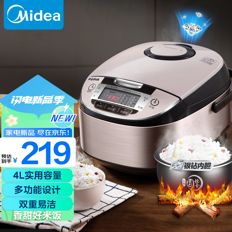 美的(Midea)4L电饭煲电饭锅家用大容量智能不粘锅一键柴火饭多功能金属机身圆灶釜内胆MB-WFS4029(3-8人)价格:219.00元!
