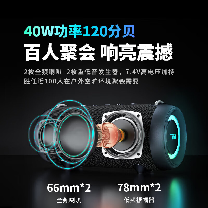 MIFA A90无线蓝牙音箱大功率超重低音炮大音量便携式广场舞车载户外防水露营小音响家用高音质大嘴鸟价格:469.00元!
