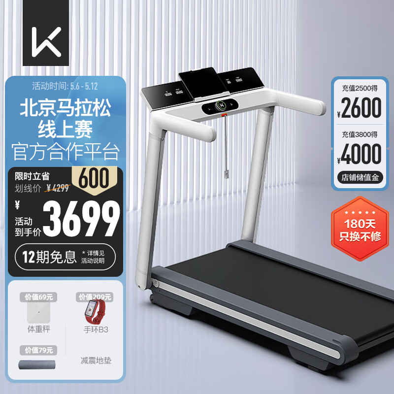 Keep跑步机家用健身器材 智能坡度调 宽大跑台走步机 家庭锻炼K4白价格:3699.00元!