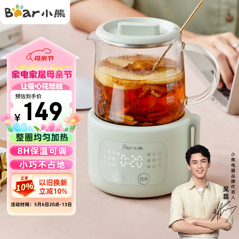 小熊(Bear)迷你养生壶养生杯 电炖杯电热杯煮花茶壶烧水壶办公室杯子0.4L全玻璃杯体YSH-F04E1 送礼推荐价格:149.00元!