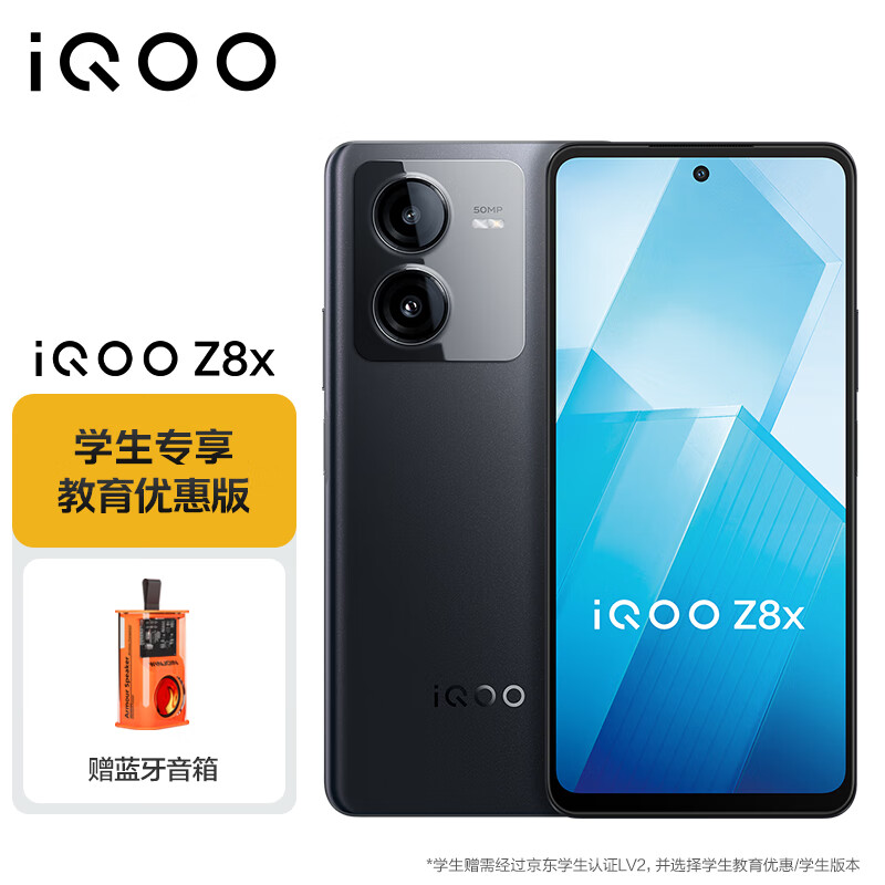 vivo 【教育优惠-学生专享价】 iQOO Z8x 12GB+256GB 曜夜黑 6000mAh巨量电池 骁龙6Gen1 5G手机价格:1309.00元!