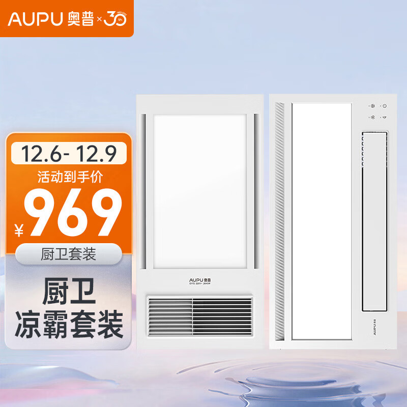 奥普(AUPU)浴霸E172纤薄强弱风暖浴霸+照明吹风二合一凉霸套装(附件形式)价格:1199.00元!