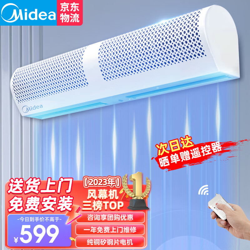 美的(Midea)风幕机商用风帘机电梯商场超市空气幕工业遥控风闸0.9米FM3009-Y价格:599.00元!