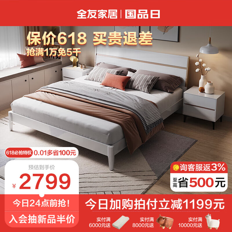 全友家居 床现代简约双人床双色拼接床屏板式床卧室家具126101B价格:3998.57元!