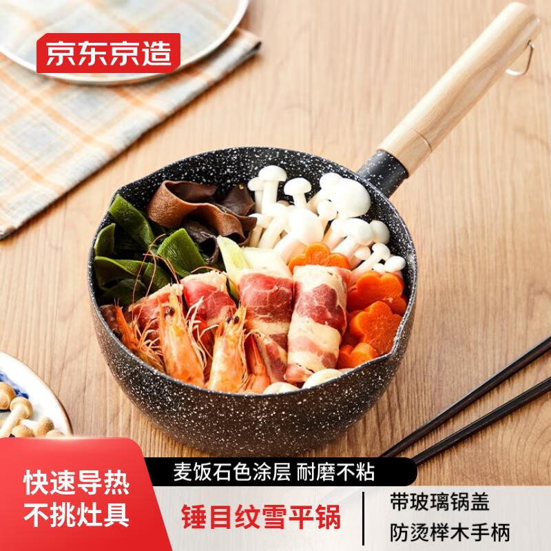 京东京造 小奶锅煮面汤锅 麦饭石色不粘锅雪平锅蒸煮辅食锅 带盖20cm价格:69.90元!