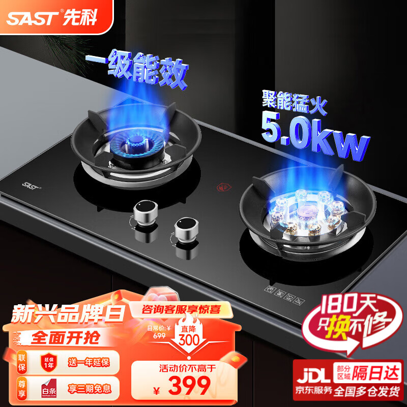 先科(SAST)燃气灶双灶鸳鸯灶液化气全进风猛火灶天然气大火力家用爆炒炉灶 【销冠飙榜】5.0KW/聚能防风/全进风 -液化气价格:799.00元!