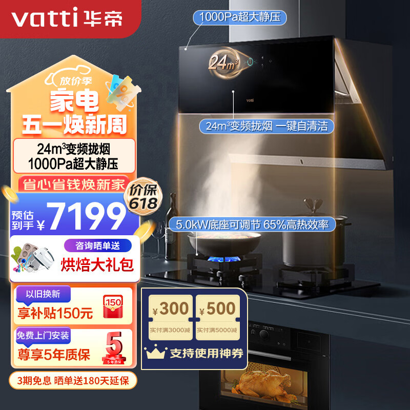 华帝(VATTI)抽油烟机旗舰机王侧吸式变频油烟机燃气灶微蒸烤家用厨房三件套i11193+72B+i23011(天然气)价格:7199.00元!