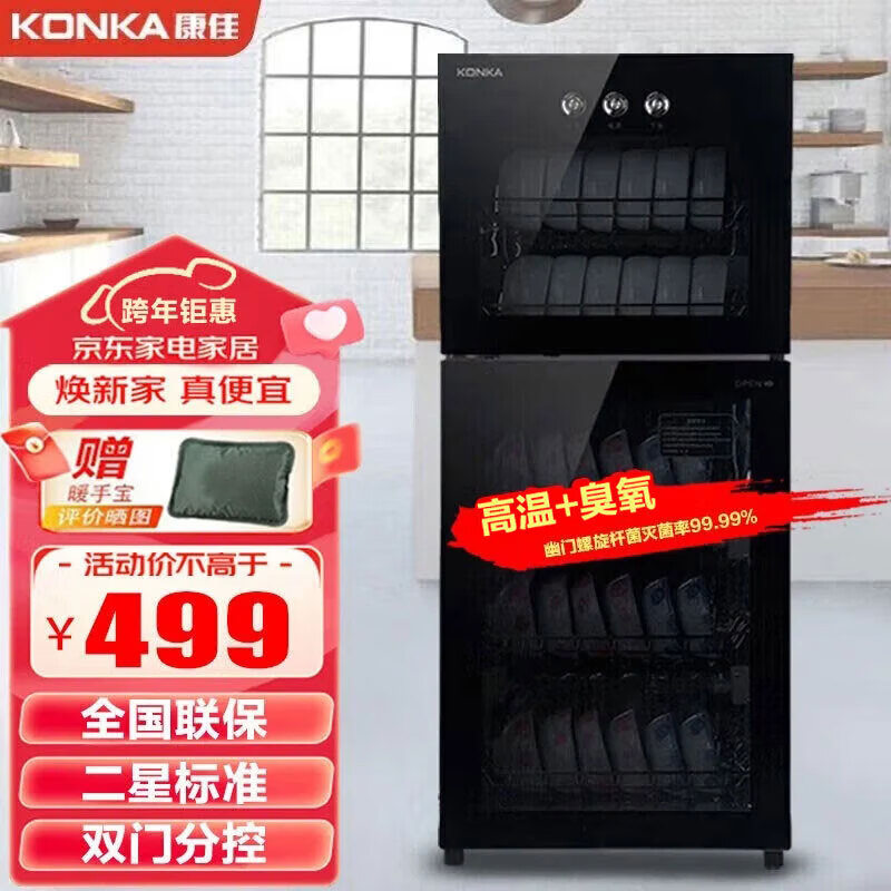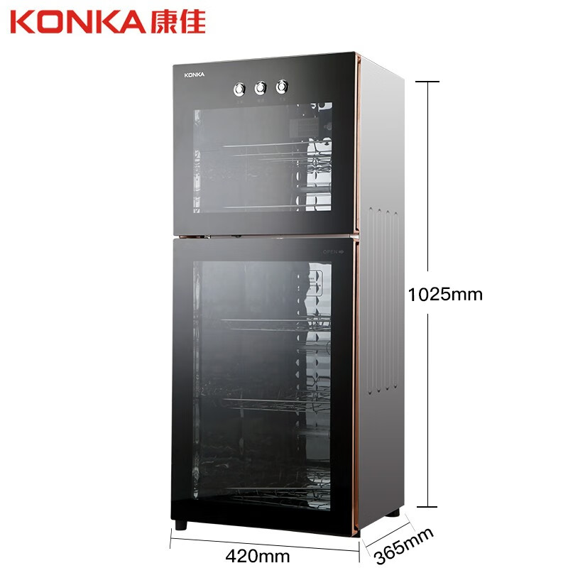 康佳(KONKA)消毒柜家用立式高温消毒柜商用厨房消毒碗柜大容量双门碗筷餐具茶杯高温消毒碗柜 二 100L 168型高温双室(上2层下3层)价格:479.00元!