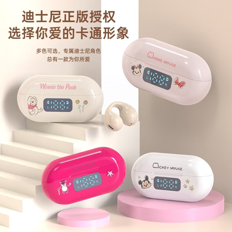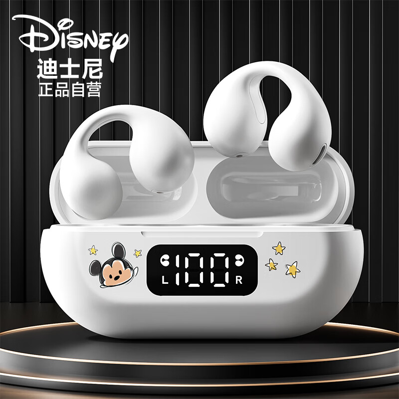 迪士尼(DISNEY)【旗舰升级版】蓝牙耳机不入耳开放式骨传导概念 夹耳式挂耳运动音乐通话降噪游戏 H11米奇白色价格:129.00元!