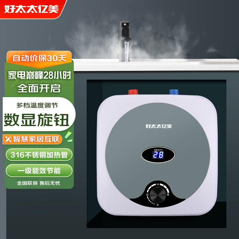 好太太亿美小厨宝厨宝热水器厨房迷你小厨宝储水式小尺寸1500W热水宝10升上出水厨宝AO-X2-10价格:319.00元!