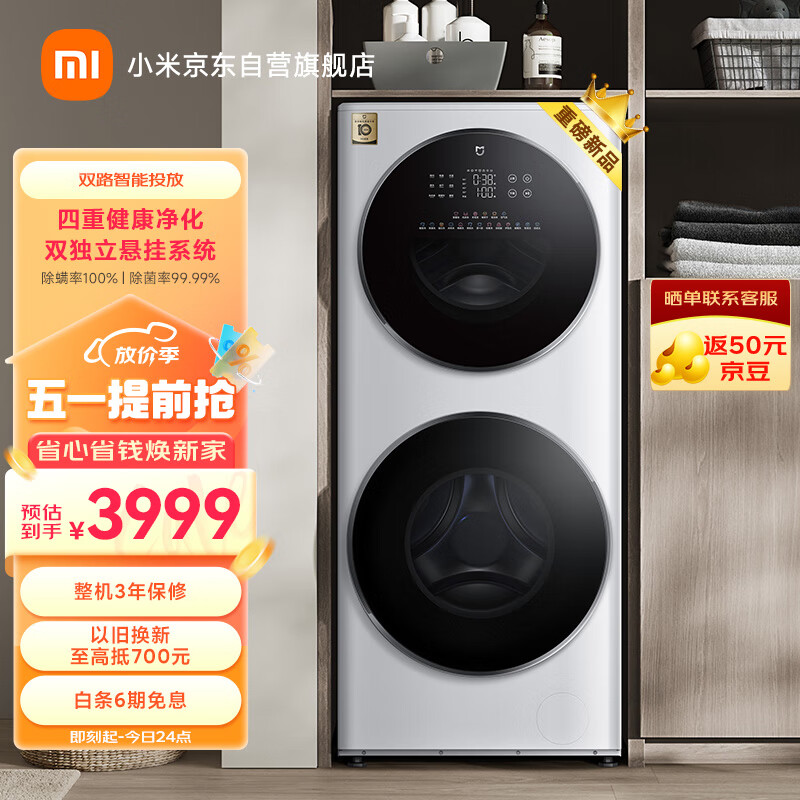 米家小米15KG子母双筒分区洗衣机洗烘一体滚筒全自动白色 直驱变频高温洗空气洗XHQG150MJ205价格:3999.00元!