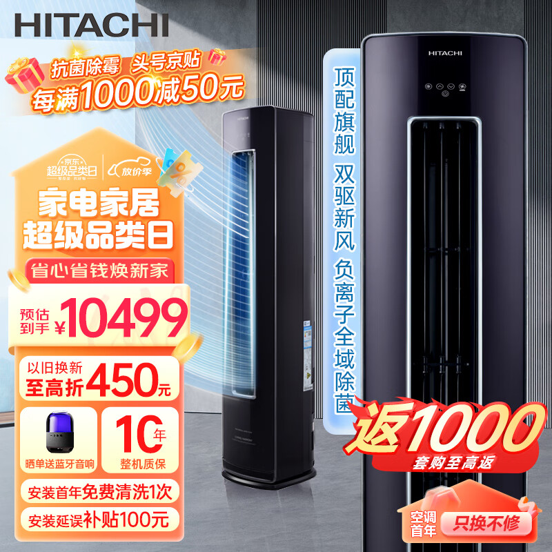 日立(HITACHI)白熊君新1级能效3匹圆柱式柜机立式空调节能双驱新风全域除菌智能wifi以旧换新RAF/C-ZH30PHAPC价格:10999.00元!