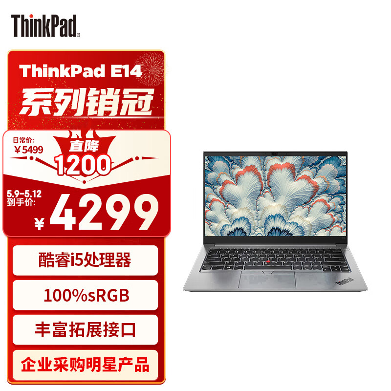 ThinkPad E14 14英寸轻薄便携联想笔记本电脑 酷睿i5-1240P 16G 512G 100%sRGB 银 丰富接口价格:4299.00元!