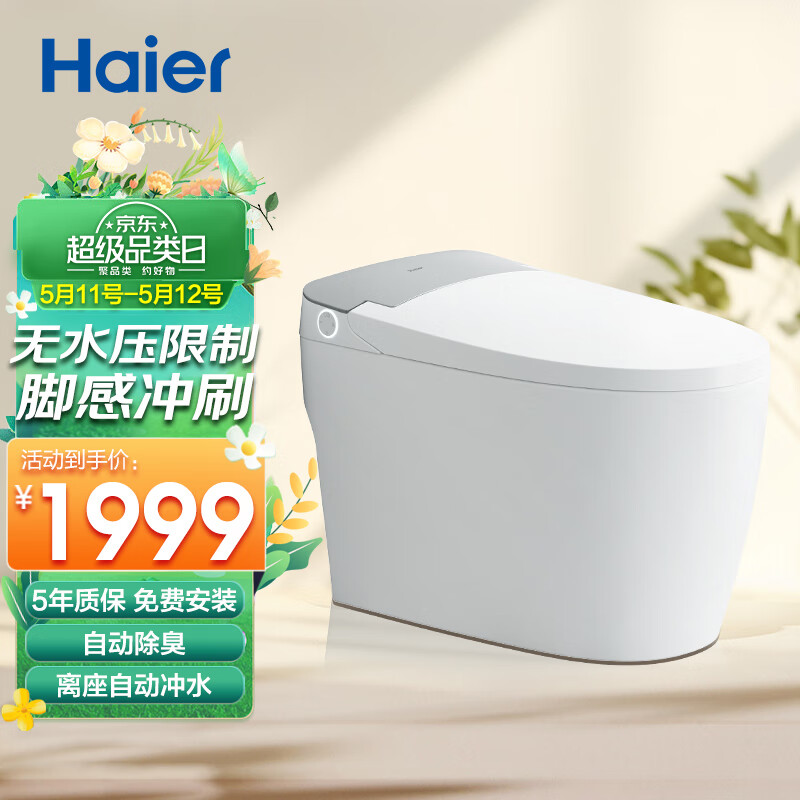 海尔(Haier)智能马桶 带水箱无水压限制 脚感冲刷全自动坐便器HR280-D45价格:2999.00元!