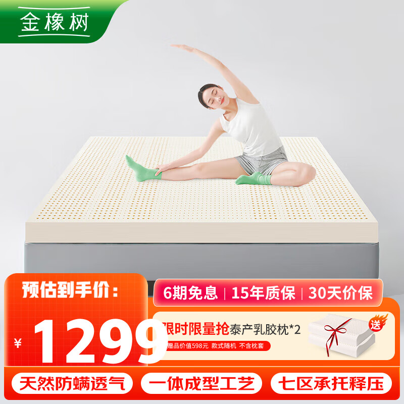 金橡树泰国乳胶原液进口床垫榻榻米双人床垫1.8米*2米 泰舒 含内外套价格:1799.00元!