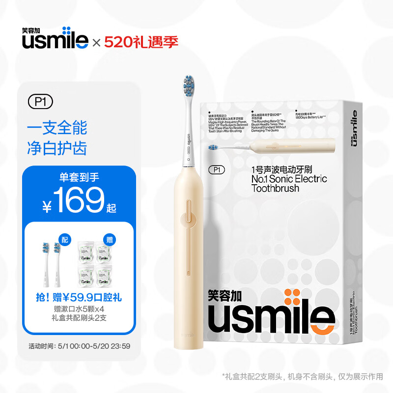 usmile笑容加电动牙刷 成人情侣版 软毛声波自动牙刷 1号刷 奶油黄价格:149.00元!