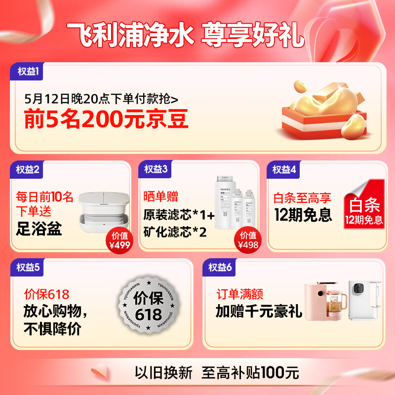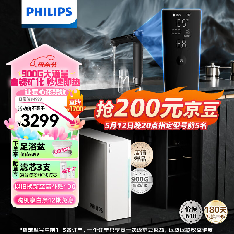 飞利浦(PHILIPS)净水器家用净水机U22 Pro 5年RO反渗透富锶矿化 母婴直饮全时鲜 2.3L/min 900G加热净水器AUT7060价格:3299.00元!