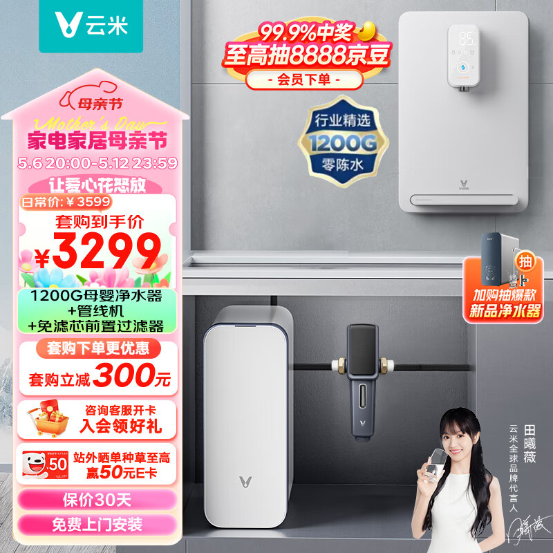 云米(VIOMI)Super Y 1200G全屋净水套装净水器+管线机MG2-B+前置过滤器VF4三件套家用直饮加热净水器净水机价格:3599.00元!