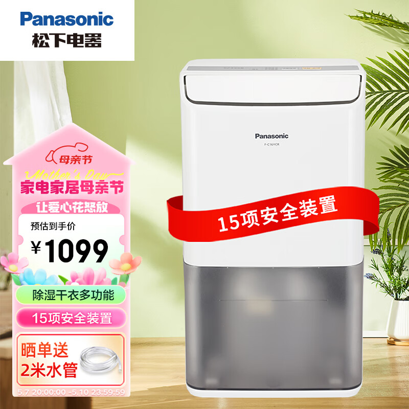 松下(Panasonic)除湿机/抽湿机 家用卧室办公室地下室轻音干衣吸湿器F-C16YCR价格:1129.00元!