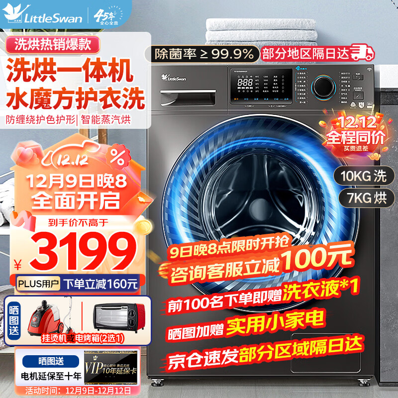 小天鹅洗衣机水魔方冷水洗洗烘一体机1.1高洗净比全自动滚筒洗衣机10公斤除菌护色护形TD100V868WMADT价格:3299.00元!