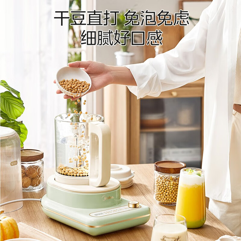 1、第二次购买了,打的很细腻,好喝,营养,无添加,爱了,款式好看,操作简单,准备好东西,到点就可以喝了,适合我这种懒人。美的,相信它的品质。