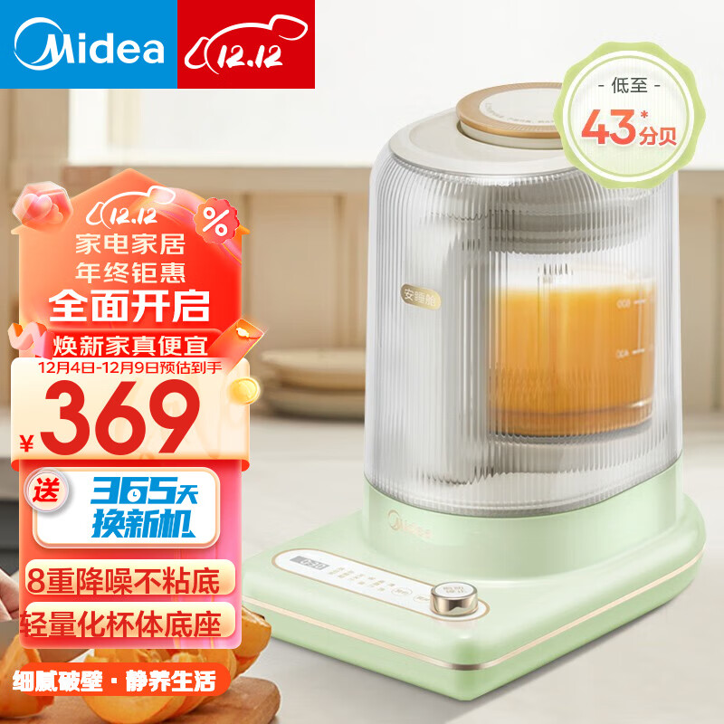 美的(Midea)柔音破壁机家用1.2升豆浆机低音安睡40分贝隔音罩智能全自动榨汁机多功能辅食机降噪料理机早餐机 【纤薄底座 | 轻量杯体】MJ-PB40ST21价格:499.00元!