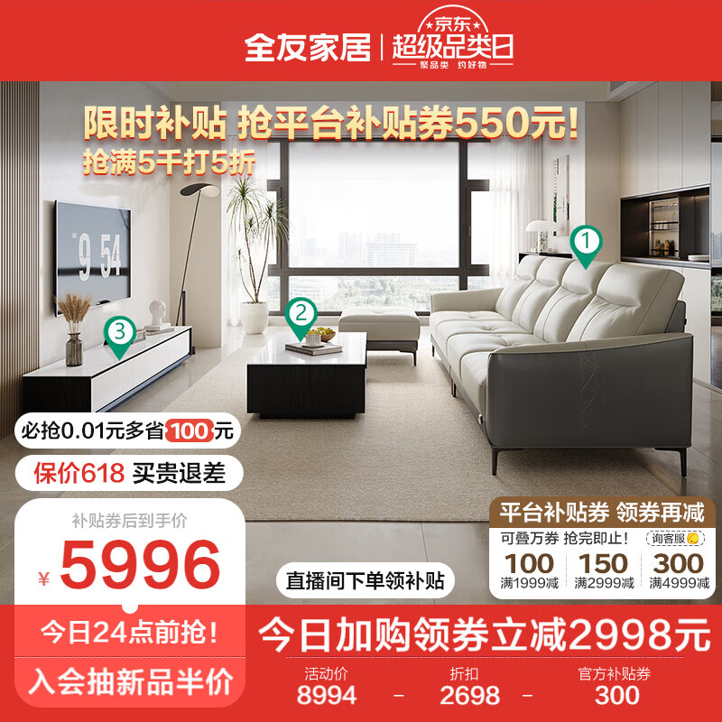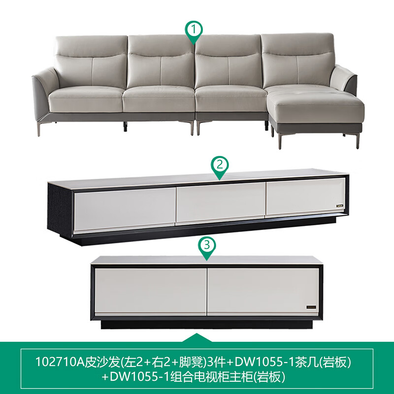 全友家居 简约客厅3件套装102710皮沙发岩板茶几电视柜主柜客厅家具价格:8994.29元!