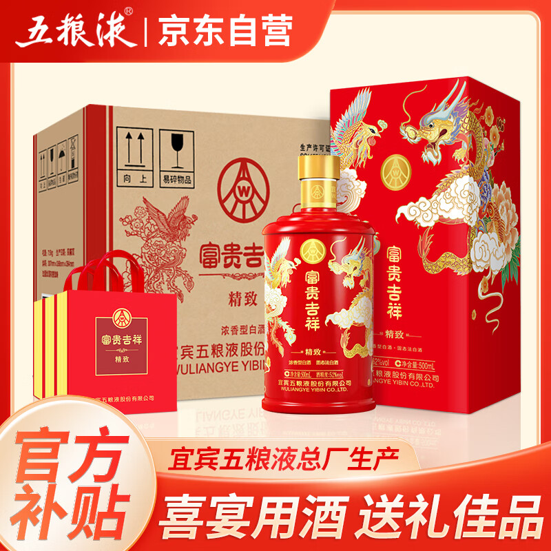 五粮液股份 婚宴喜酒 富贵吉祥精致52度500ml*6瓶 固态法浓香型纯粮食酒价格:1178.00元!