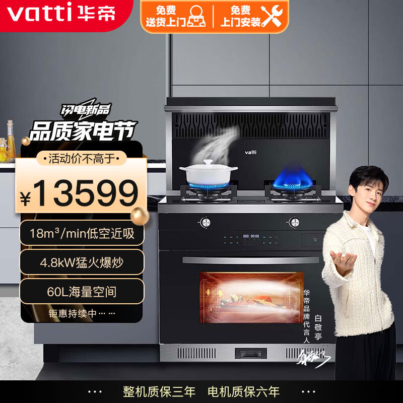 华帝(VATTI)集成灶蒸烤一体 集成灶一体灶 低空近吸 4.8kW聚焰猛火 家用蒸烤箱 PY07天然气价格:12999.00元!