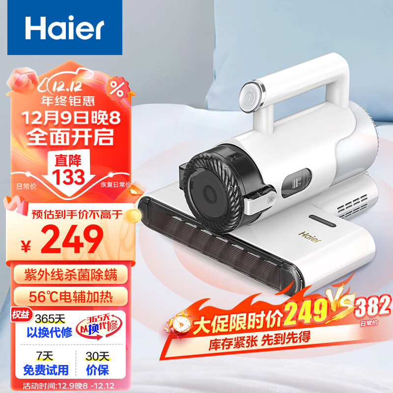 海尔除螨仪大吸力家用床上小型手持UV-C紫外线杀菌吸尘神器去螨虫热风除湿741W价格:249.00元!